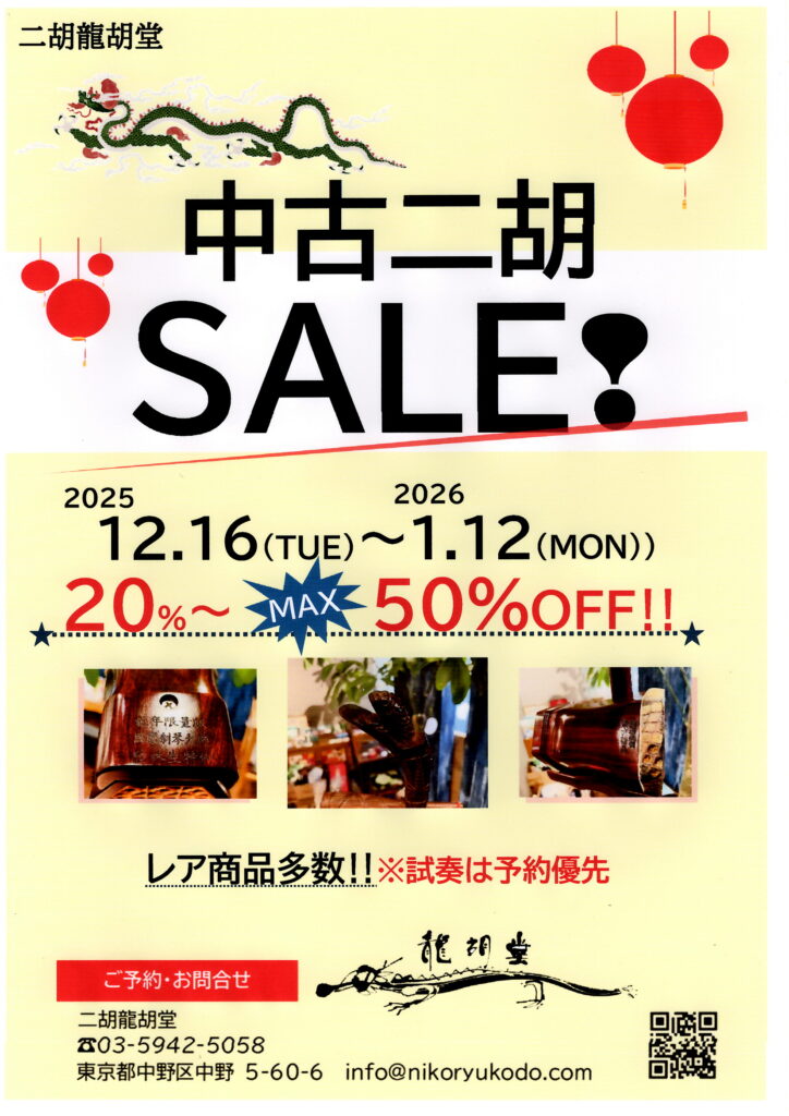 - 龍胡堂中古二胡セール❗2025.12.16